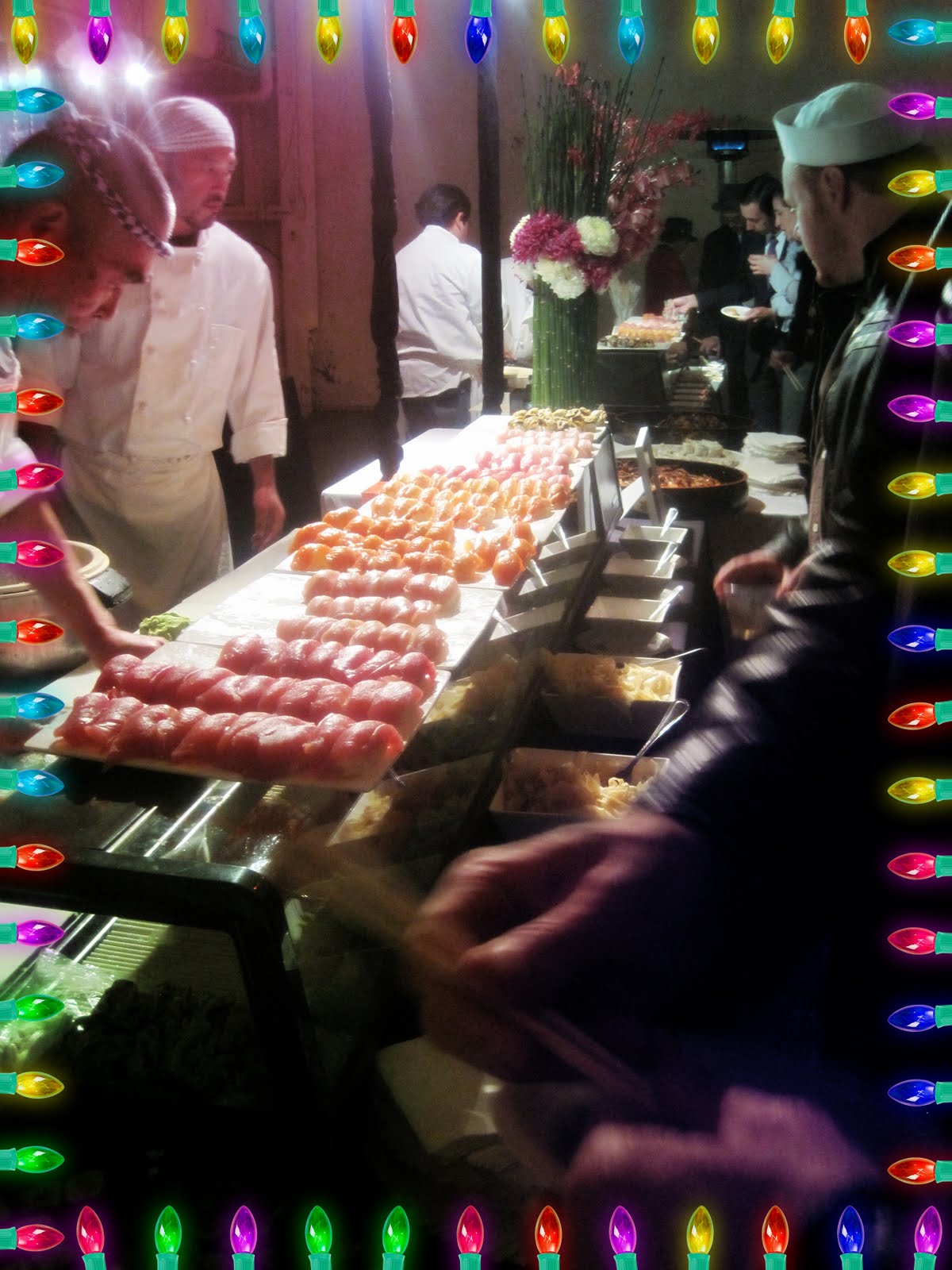 Now, for a good laugh. This is the picture from the Google Holiday party and boy did those cameras bring out the shiny in my dress. I swear to God that thing didn't look so metallic in the dim, ambiance lighting. I look like a pregnant mess of tin foil. That is what I get for sqeezing my pregnant body into a non-maternity holiday dress. I will be wearing this dress to a wedding this weekend so watch out bride and groom, hormonal woman in heavy metal will be throwing off the photographer's lighting: