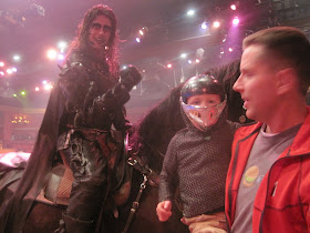 Two hours until showtime. We got tickets to the Tournament of Kings where Blake and Reade can watch real knights joust and fight while the adults eat turkey legs.