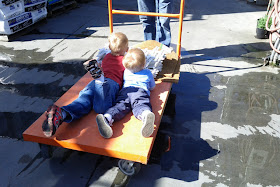 Blake asking to be in the picture. Reade's bruise is from when Blake threw a Lego board at his head the other evening: