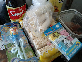 My friend offered to show me around a Korean market (super fun). Then, another friend was invited to shop along and we got to go out to lunch afterwards and talk about adult things (again, super fun). Here is my loot: