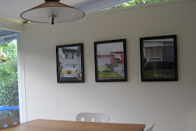 My dining room wall has been blank since we moved in.  I never could find the right thing to put there.  I wanted to put up some surf pictures, but I seemed to have misplaced two, 16"x20" prints since we moved.  Who loses pictures that big?  Where on Earth could they be?  Their loss inspired me to print out new photos in the frames.  I love the architecture of the Westlake homes in Daly City so I thought I would crop photos from the internet and get them framed.  They have such character and I love that the car in the photo on the left is an old Volvo.  My first car was a 1978 Volvo so I have a soft spot in my heart for them.